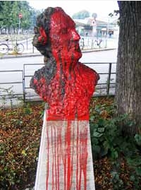 Klaus Grage, CDU-Chef im Bezirk, räumt ein: 'Das Denkmal hat viel Unruhe gebracht. Bürger warfen uns vor, unbedacht mit der Geschichte umzugehen.' In der Vergangenheit hatte es wiederholt Proteste gegeben, bei denen die Plastik etwa mit roter Farbe besprüht worden war..." kpu |