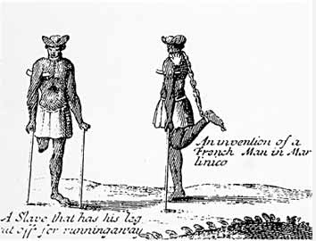 - Sklaven, dem ein Bein von seinem Besitzer abgehackt wurde. Das Bild rechts zeigt