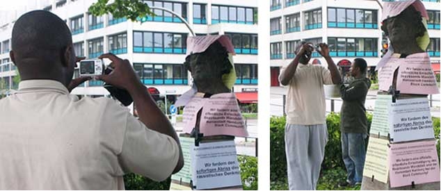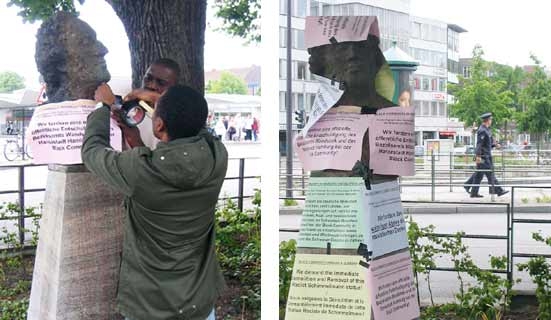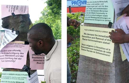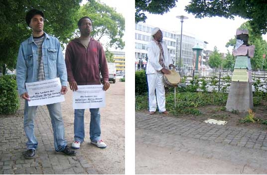 The Black Community Hamburg protested again 5/25/08 in front of the Schimmelmann monument.