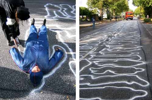 Auf der Schimmelmannstraße entsteht in konkreter und körperlicher Zusammenarbeit aller Beteiligten das Schema eines 50 Meter langen, flüchtigen Sklavenschiffs (Idee und Konzept: Judith Haman), das sich aus den Körperumrissen der Anwesenden zu einem Gesamtbild zusammenfügt.