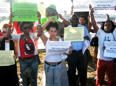 Die 28.11.-30.11.2008 stattfindende Veranstaltungsreihe Schimmelmann > pp. Hamburg entfernt ein Kolonialmonument geht den Spuren der örtlichen kolonialen Mythen und der Denkmalerrichtung nach und fragt nach dem Grad der Sensibilisierung der Öffentlichkeit für eine postkoloniale Gedenkkultur. Sie stellt historische Bezüge her und präsentiert beteiligungsorientierte künstlerische Strategien. Mit Lesungen, Vorträgen und Filmen von Kunstschaffenden, KulturwissenschaftlerInnen und HistorikerInnen spürt sie ferner der Frage nach, wie künftig eine postkoloniale Gedenkkultur aussehen kann. Sie stellt Ideen und Konzepte für das Modellprojekt eines park postkolonial vor. Mehr Informationen zur Veranstaltungsreihe werden folgen. |