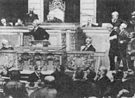 Bebel hält im Reichstag eine Rede gegen die konservative Mehrheit der Kolonalbefürworter