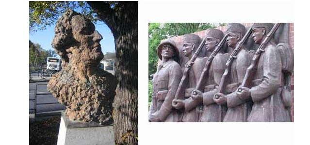 The 'Askari Reliefs' in the so-called 'Tansania-Park' symbolise the colonial greed of the German nazi regime. The monument was restored and re-erected 2003. Several protests have been addressed against it and the Schimmelmann bust.